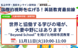「自ら学び自ら考える力」を育てる学習といわれる「探求学習」。具体的にはどんな学習を中学では行うのか詳しく伺います。「探求学習のこんなところが知りたい」という事前質問があれば申込時に「質問とコメント」欄へご記入ください。当日チャットで質問をすることもできます。※事前質問が優先となります。