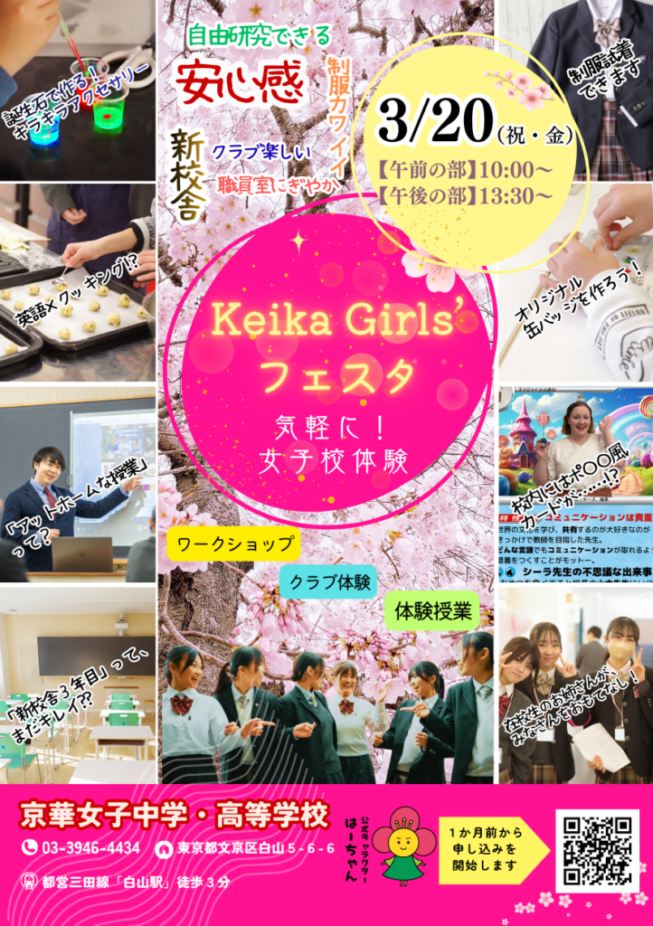 京華女子中学校では、3月20日(祝・金)keika Girl’s フェスタを行います。