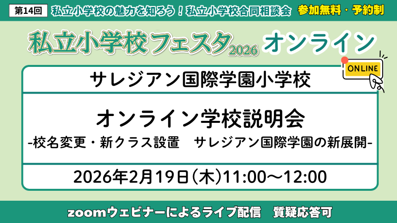 今回のオンライン説明会では、サレジアン国際学園小学校として大切にしていること、星美クラス・インターナショナルクラスそれぞれの教育目標、教育内容、特色など、学校の情報をしっかりとお伝えさせていただきます。